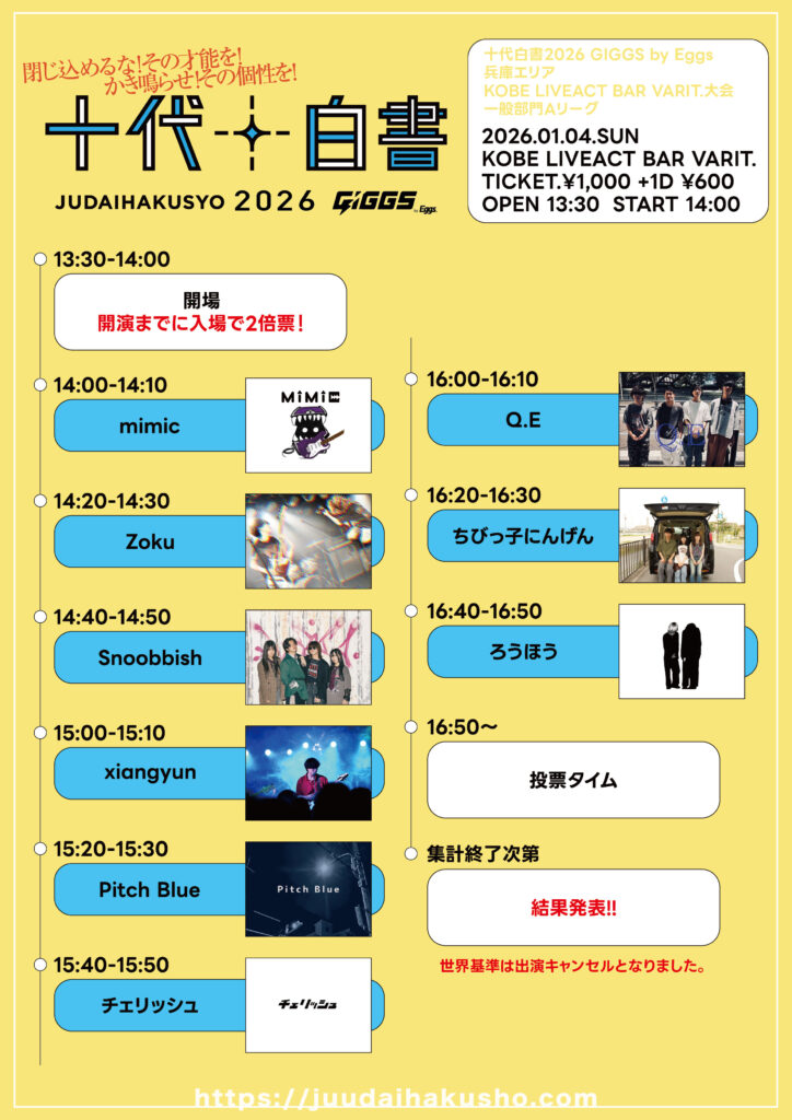 日程 : 2026年1月4日(日) 会場 : KOBE LIVEACT BAR VARIT. / Music Club JANUS