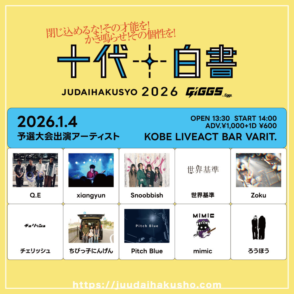 日程:2026年1月4日(日)会場:KOBE VARIT.OPEN 13:30 / START 14:00TICKET ¥1,000 +1D ¥600 (各出演者手売り)